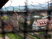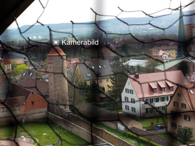 Wenn es im Frühjahr im Kirchturm zum ersten Mal warm wird, dann schlüpfen tausende Fliegen, die über die Optik herfallen. Diese sitzen auf dem Spiegel vor und direkt auf dem Fotochip. Das sind die dunklen Flecken im Bild. Gleichzeitig haben sich wohl wieder Vögel Zugang zur Technik verschafft. Die Kamera ist leicht verdreht, aber trotzdem noch richtig ausgerichtet. Wären Störche im Nest, dann würden Sie das auch sehen.