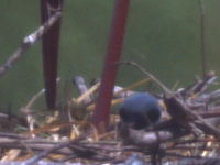 Auch am heutigen Tag konnte lediglich ein einziges Küken beobachtet werden. Ich habe zwar Mitteilungen erhalten, dass bis zu drei Küken beobachtet sein sollen, aber das können die Aufzeichnungen nicht bestätigen. Wie kommt es zu diesen Beobachtungen? Das Küken bewegt sich ziemlich schnell im Nest. Es kann innerhalb weniger Sekunden von der einen Seite zur anderen wandern. Zwichen zwei Bildern liegen aber mindestens zwei bis drei Sekunden. In den unterschiedlichen Aufnahmen denkt man dann häufig, es säßen an drei Stellen Küken. Diese "drei" sind aber nie auf einem Bild zu erkennen. Logisch, denn es ist ja dreimal das selbe Küken.