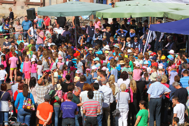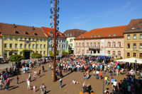 Während der Aufstellung des Zunftbaumes auf dem Hammelburger Marktplatz konnten vier fremde Störche über der Stadt beobachtet werden. Das brachte auch Jakob und Adele in Wallung. Allerdings blieb Adele dabei auf den Küken sitzen. Eine Beobachtung, die wir so auch nocht nicht machen durften.