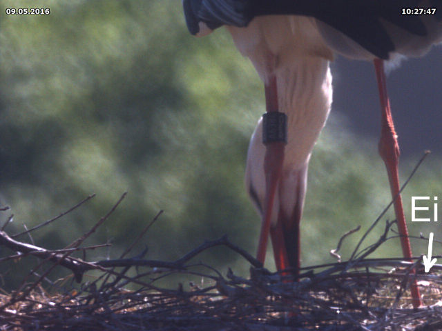 Aus den Bildern wird nicht eindeutig erkenntbar, was genau im Nest passiert ist. Ich habe mir jetzt alle Aufnahmen angesehen, aber leider sind kaum welche dabei, bei denen ich Küken vermessen kann. Mein persönlicher Eindruck ist aber, dass am frühen Morgen des 9. Mai noch das erste Küken vom 4. Mai im Nest lag. Die Größe dürfte inetwa passen. Kurz vor zehn Uhr des selben Tages könnte ein zweites Küken geschlüpft sein, eine Eierschale (leider nicht eindeutig) könnte später einen Hinweis darauf geben.