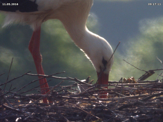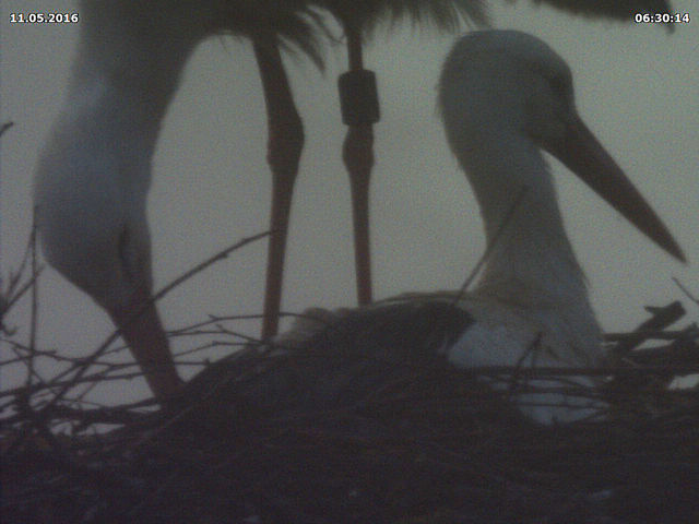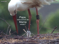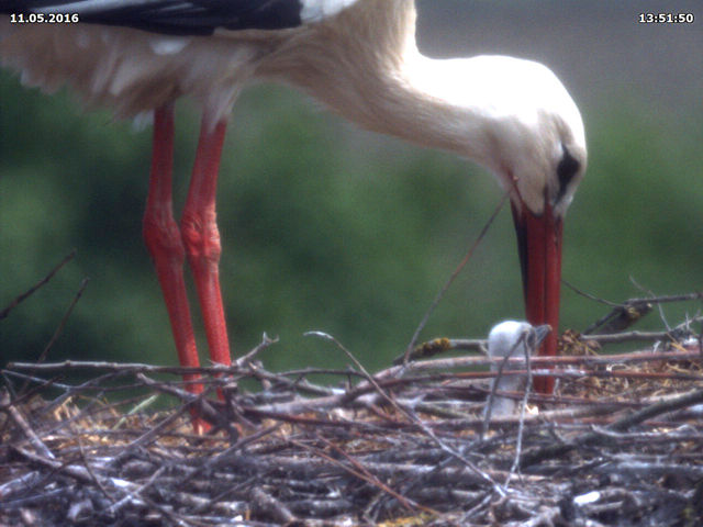 Wie in jedem Jahr haben Herr Willecke und ich unterschiedliche Tage für das Schlüpfen der Jungstörche im Verdacht. Auch wenn wir wie immer keine konkrete Angabe machen können, so gehen wir doch davon aus, dass es zwischen Mitte bis Ende nächster Woche soweit sein sollte. Bitte halten Sie daher die Augen offen. Die Technik ist jedenfalls vorbereitet und speichert bereits unzählige Bilder für die Nachkontrolle ab.