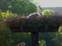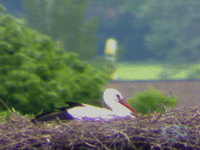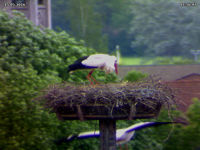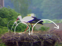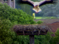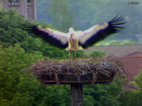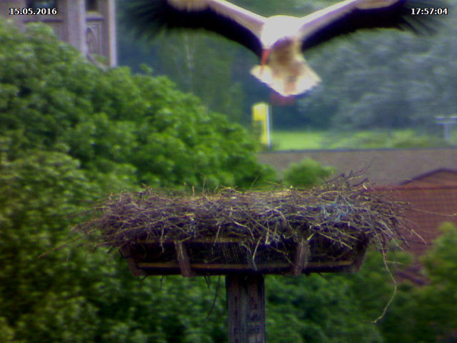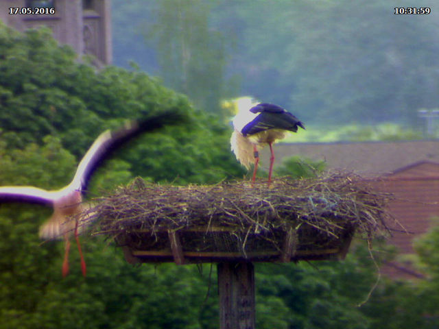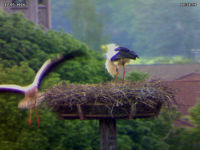 Heute Nachmittag haben sich wieder fremde Störche in der Luft befunden. Adele hielt sich währenddessen sowieso im Nest auf. Jakob kam sofort zur Verteidiung angeflogen und hat den fremden Storch erfolgreich vertreiben können. Er hat ihn regelrecht verfolgt.