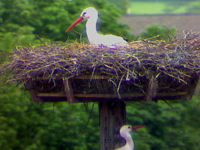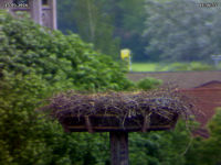 Wir wissen nicht sicher, ob der Bewuchs im Nest oder der vermutete feuchte Boden darin zur Entscheidung der Störche geführt hat, sich ein anderes Nest zu suchen. Wir wissen ja nicht einmal, ob sie sich konsequent gegen Hammelburg entschieden haben. Falls, dann könnte es auch daran liegen, dass im letzten Jahr die Brut erfolglos verlief und das Nest daher in "schlecher Erinnerung" geblieben ist.