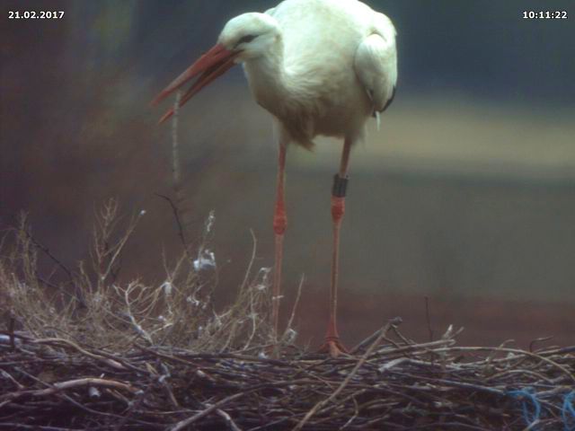 Heute Morgen hatte ich noch mit Herrn Willecke telefoniert, um mit ihm zu diskutieren, warum das Verhalten der Störche dieses Jahr so auffällig sein könnte. In einem Punkt sind wir uns einig, wir gehen davon aus, dass es nichts mit dem Bewuchs im Nest zu tun hat. Viel wahrscheinlicher erscheint es mir, dass die Störche (da nicht aus Afrika kommend) frei darüber entscheiden können, wann sie das Nest belegen. Und da es für eine Brut sowieso noch zu früh ist, bedarf es auch keiner permanenten Anwesenheit. Das Verhalten der Störche ändert sich gerade überall, immer weniger Störche fliegen nach Afrika. Insofern ist es schwer, bekanntes Wissen über Störche auf die heutigen Tage anzuwenden.
