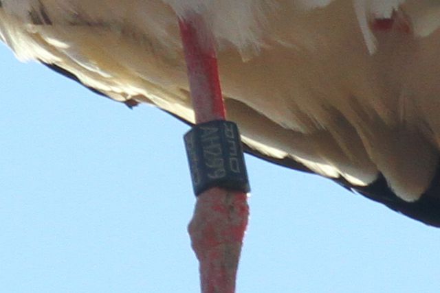 Doch auch dieser Storch entpuppte sich nicht als Jakob, dennoch kannte ich dessen Nummer bereits. Als wenn die Beobachtung in Hammelburg nicht schon Überraschung genug gewesen wäre, befindet sich im Westheimer Nest ein Hammelburger Jungstorch aus dem Jahr 2015: DER AH299. Irgendwie doch ein Nesttausch!